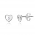 Stříbrné náušnice ve tvaru srdcí zdobený zirkony čiré barvy.