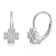 SOFIA stříbrné dětské náušnice se čtyřlístky s čirými zirkony působí svěže a roztomile.