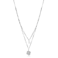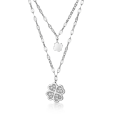 Dámský stříbrný náhrdelník SOFIA s dvojitým řetízkovým designem a přívěsky ve tvaru čtyřlístků, z nichž jeden je zdoben čirými zirkony.