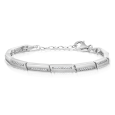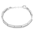 Dámský stříbrný náramek s matnými a lesklými částmi a se zirkony čiré barvy.