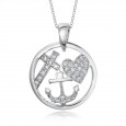 Přívěsek ve tvaru kruhu se srdcem, kotvou a křížem symbolizující víru, naději a lásku.
