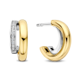 Dámské stříbrné náušnice TI SENTO pozlacené 14karátovým žlutým zlatem a zdobené čirými zirkony.