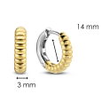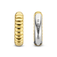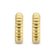 Kruhové náušnice TI SENTO jsou vyrobeny ze stříbra se žlutým pozlacením a mají výrazný žebrovaný povrch, který vytváří plastický, zlatavě zářící efekt.