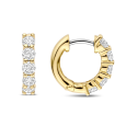 Dámské stříbrné náušnice TI SENTO se žlutým pozlacením zaujmou svým jemným a elegantním designem. Hladká pozlacená obruč dodává šperku teplý odstín, zatímco čiré zirkony na přední straně přinášejí decentní jiskru a podtrhují celkovou ženskost náušnic.