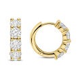 Dámské stříbrné náušnice TI SENTO se žlutým pozlacením upoutají minimalistickým, ale výrazným designem – kruhový tvar vyniká řadou čirých pavé zirkonů, které dodávají jemnou jiskru a propůjčí šperku rafinovaný charakter.