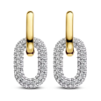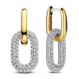 Spojení dvou elegantních článků symbolizuje nekonečné propojení momentů a pocitů – náušnice se tak stávají víc než jen doplňkem, jsou jemnou výpovědí vašeho stylu. Lesk žlutého zlata harmonizuje s oslnivými zirkony, které zachycují světlo při každém pohybu, a dodávají tak jemnou záři a graci. Nadčasový design se hodí nejen k elegantnímu outfitu, ale také jako výrazný akcent k dennímu looku.