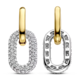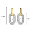 Dámské stříbrné náušnice TI SENTO pozlacené žlutým zlatem, zdobené čirými zirkony v provedení dvou propojených oválných článků.