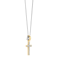 Dámský stříbrný náhrdelník TI SENTO se žlutým pozlacením zaujme jemným křížkem, ve kterém se pojí hladká zlatá linie s řadou drobných čirých zirkonů. Kombinace lesklého pozlacení a třpytivých kamínků vytváří elegantní, ženský efekt vhodný pro každodenní nošení i speciální příležitosti.