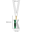 Dámský stříbrný náhrdelník TI SENTO s přívěskem písmene K, který je na úchytu pozlacený 14karátovým žlutým zlatem s výraznou malachitově zelenou výplní a zářivými čirými zirkony.