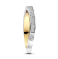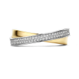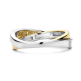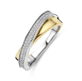 Dámský stříbrný prsten TI SENTO se žlutým pozlacením se pyšní jedinečným designem – dvě propletené liniové obroučky vytvářejí jemný kroužek, z něhož jedna je pozlacená žlutým zlatem a druhá zdobená pavé zirkony.