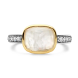 Dámský stříbrný prsten TI SENTO pozlacený 14karátovým žlutým zlatem, s perleťovým centrálním kamenem a řadou čirých zirkonů na obroučce.