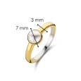 Stříbrný prsten TI SENTO se žlutým pozlacením zdobí syntetická perla v hladkém kulatém osazení, který vyniká jemným leskem a čistými liniemi.