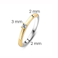 Stříbrný prsten TI SENTO se žlutým pozlacením zdobí jeden čirý zirkon v jemném osazení, který na hladké obroučce působí čistě a elegantně.