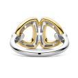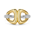 Design spojuje kontrast žlutého zlata a lesklého stříbra, přičemž trojúhelníkový motiv dodává prstenu charakter. Výrazný tvar vpředu plynule přechází do úzké obroučky pro komfortní nošení - stylový doplněk, který zaujme při každodenním i večerním outfitu.