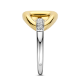 Dámský stříbrný prsten TI SENTO se žlutým pozlacením je navržen s otevřeným trojúhelníkovým motivem v přední části, který je zvýrazněn čirými zirkony.