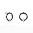 Stříbrné dámské náušnice TOUS z kolekce Straight mají kruhový tvar zdobený fazetovanými kulatými černými spinely.
