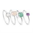 Set dámských stříbrných prstenů TOUS z kolekce Cool Color se skládá z: prstenu s ametystovým medvídkem o velikosti 0,46 cm, prstenu s růženínem o velikosti 0,7 cm, prstenu s amazonitem o velikosti 0,6 cm a prstenu s howlitem o velikosti 0,5 cm.