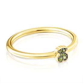Dámský stříbrný prsten TOUS s chromdiopsidovým medvídkem. Prsten je pozlacený 18karátovým žlutým zlatem.